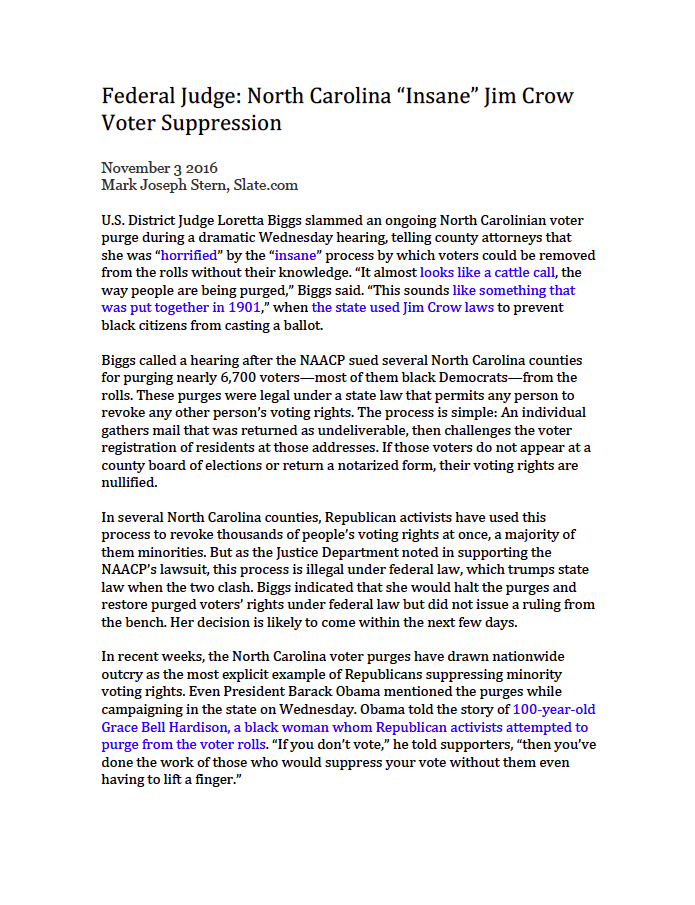 Carolina's “insane” Jim Crow voter suppression